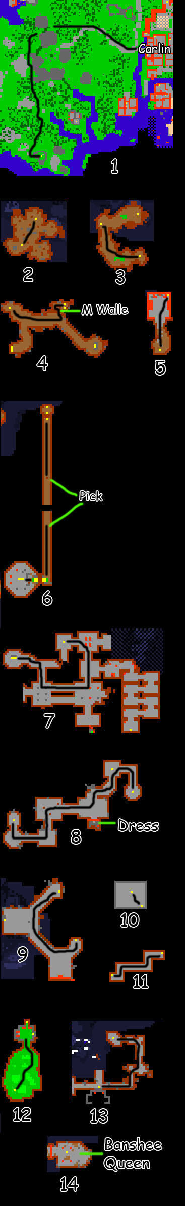 Monsters: Rats, Dwarfs, Lizards, Minotaurs, Orcs, Monkeys, Priestesses, Demon Skeletons, Elf's, all Undead monsters, Banshee, Quaras.